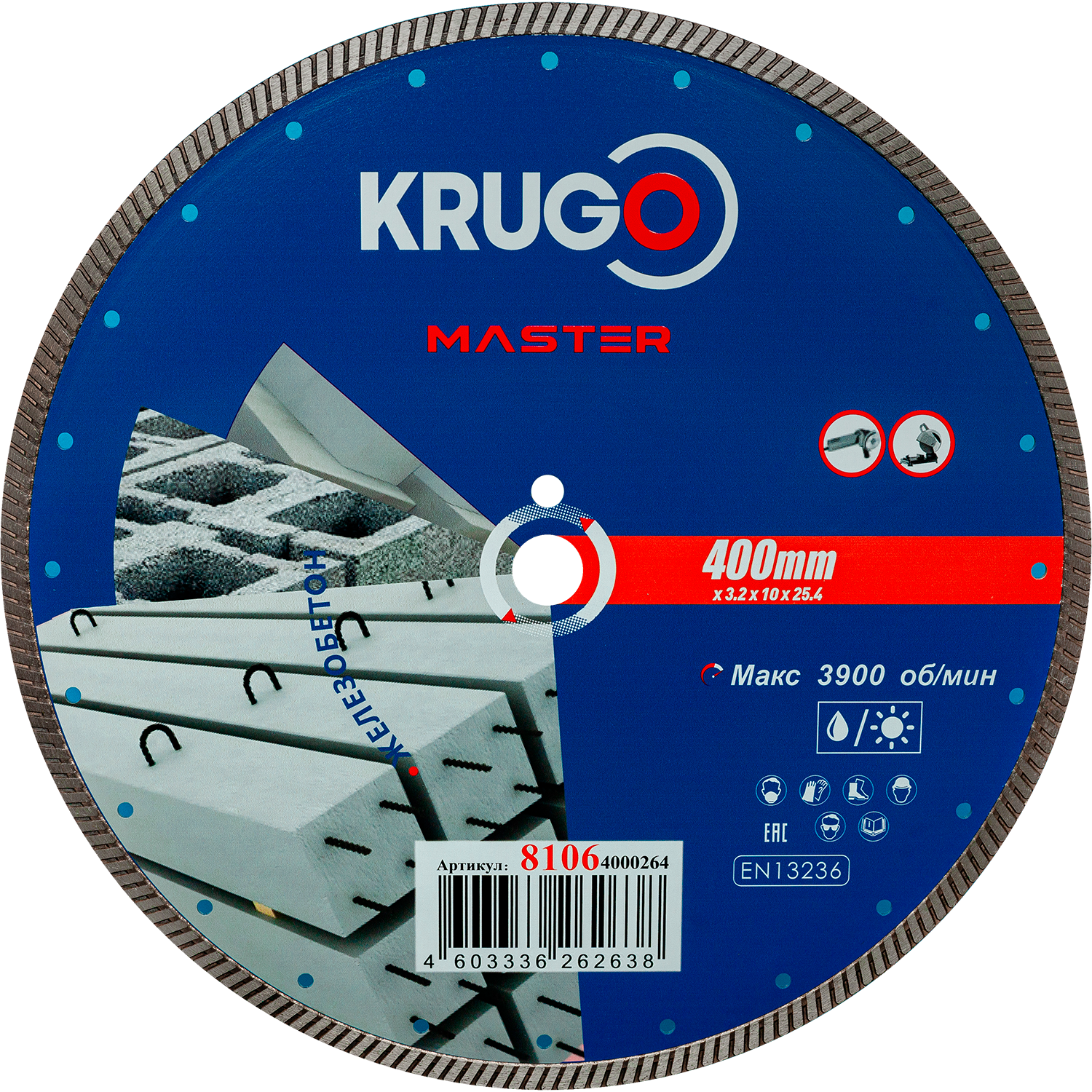 Диск алмазный Турбо по железобетону KRUGO MASTER 400х3,2х25,4х12mm, 81064000264