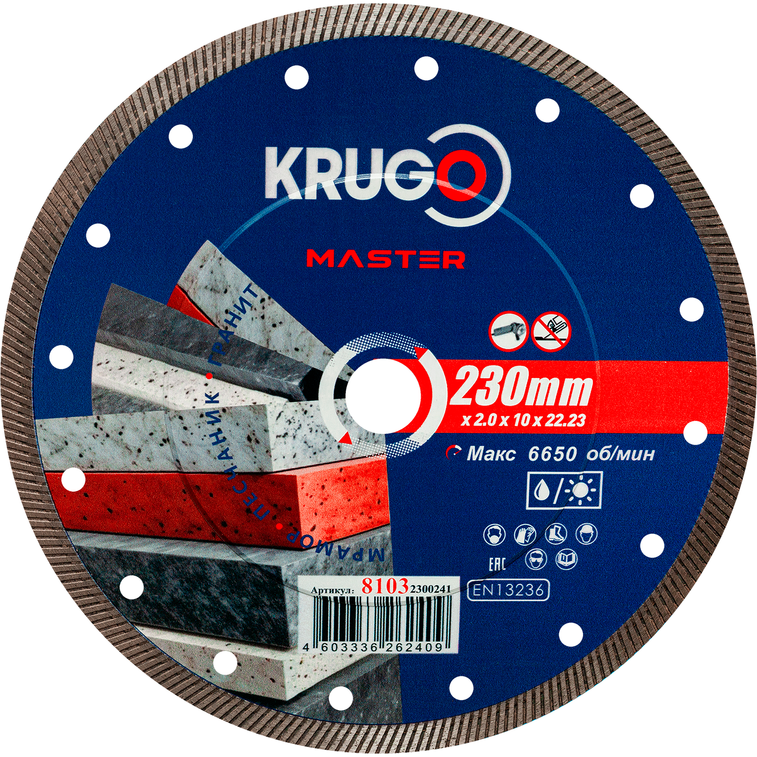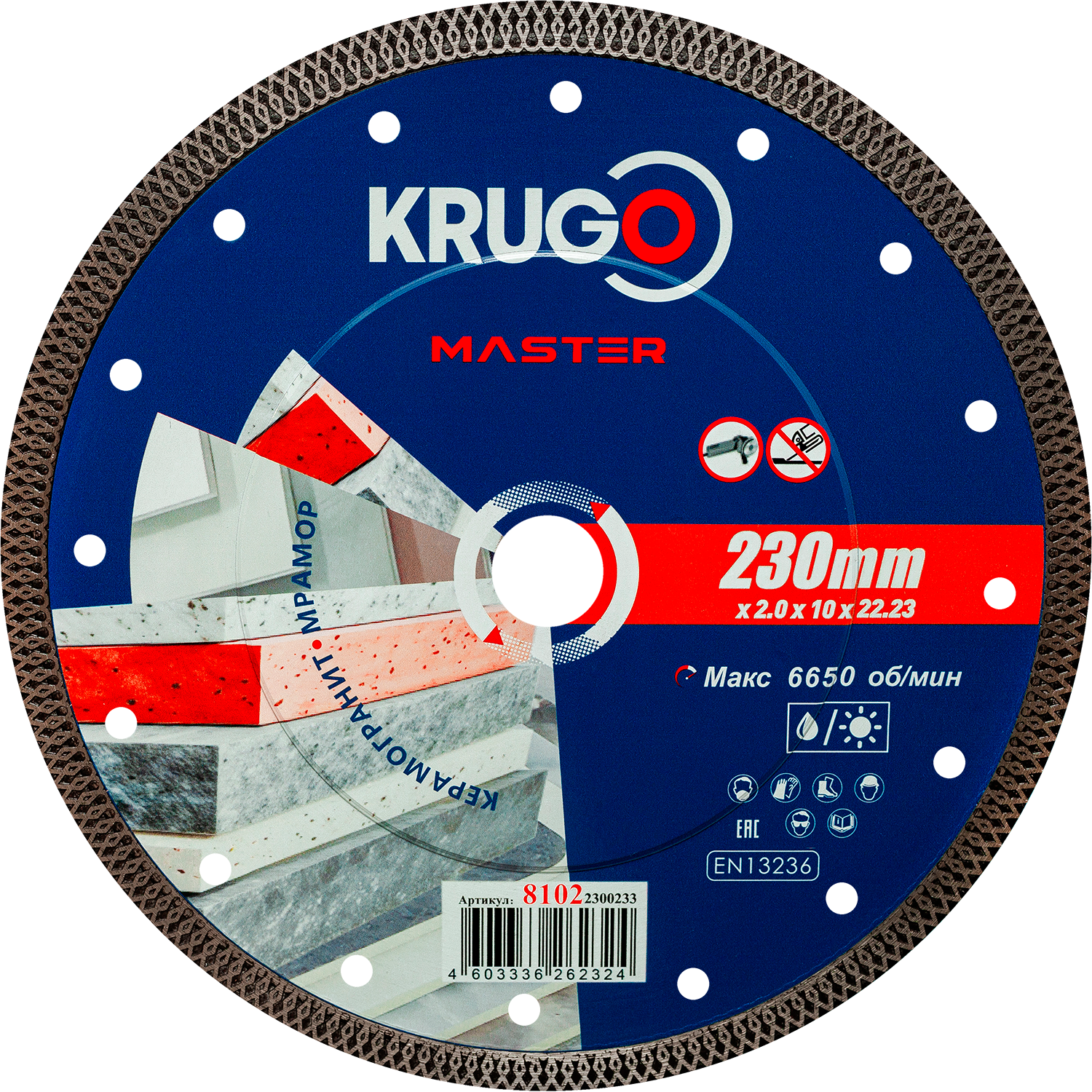 Диск алмазный Турбо ультратонкий по керамике KRUGO MASTER 230х2,0х22,23х10mm, 81032300241
