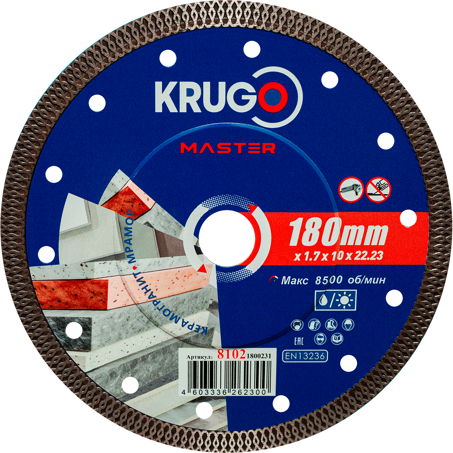 Диск алмазный Турбо ТF по керамике KRUGO MASTER 180х1,7х22,23х10mm, 81021800231