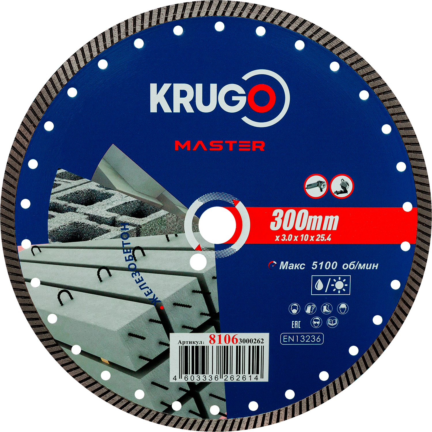 Диск алмазный Турбо по железобетону KRUGO MASTER 300х3,0х25,4х12mm, 81063000262