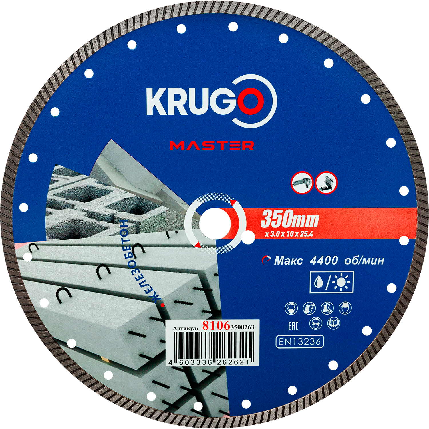 Диск алмазный Турбо по железобетону KRUGO MASTER 350х3,0х25,4х12mm, 81063500263