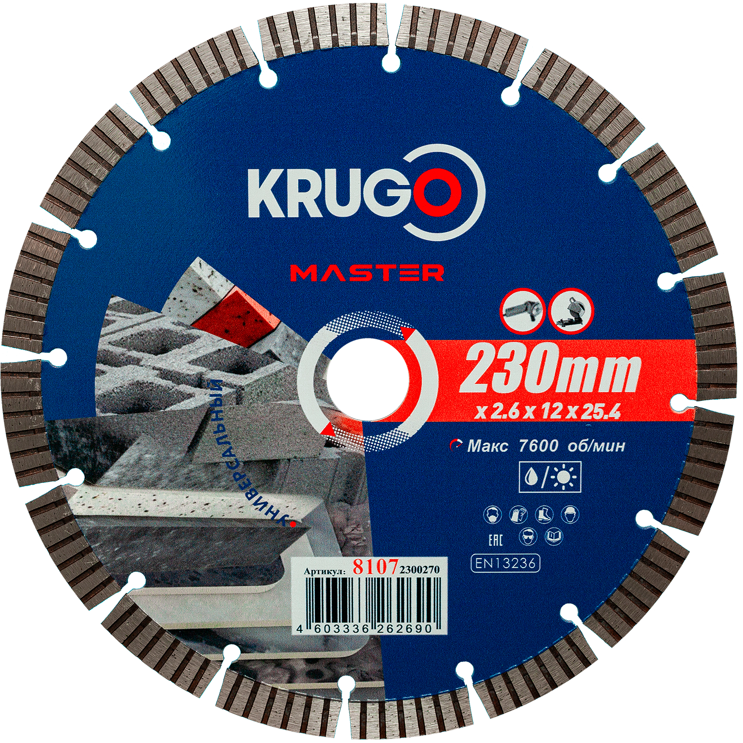 Диск алмазный сегментный турбо KRUGO MASTER по бетону 230х2,6х22,23х12mm, 81052300253