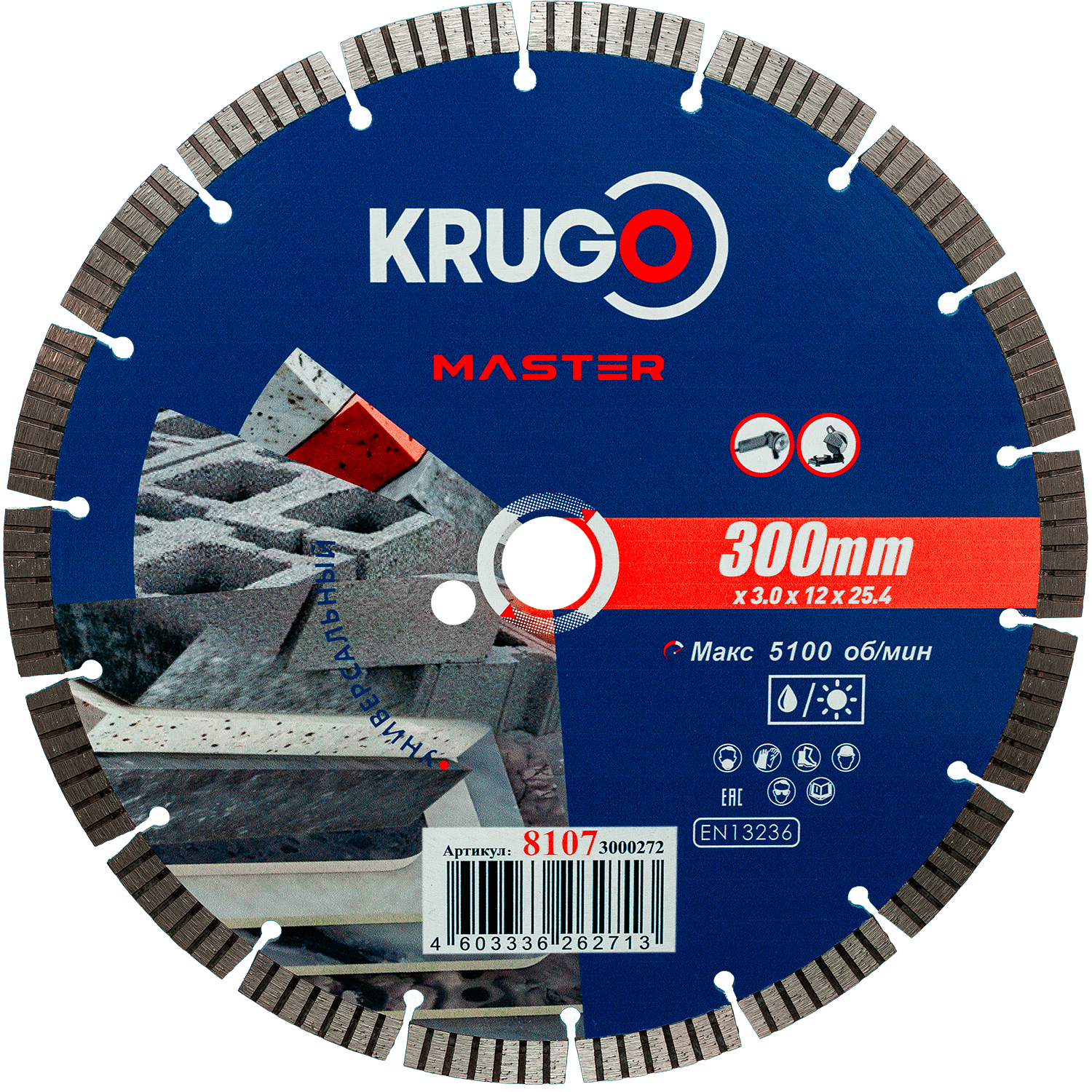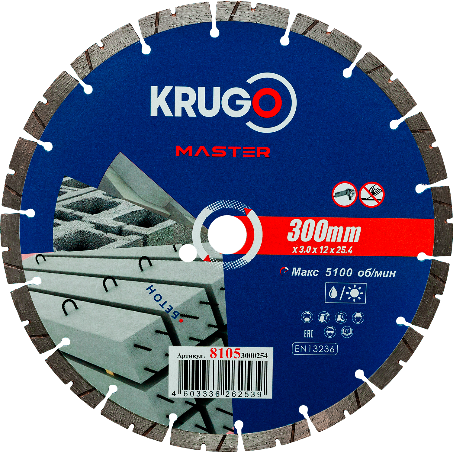Диск алмазный сегментный турбо KRUGO MASTER по бетону 300х3,0х25,4х12mm, 81053000254