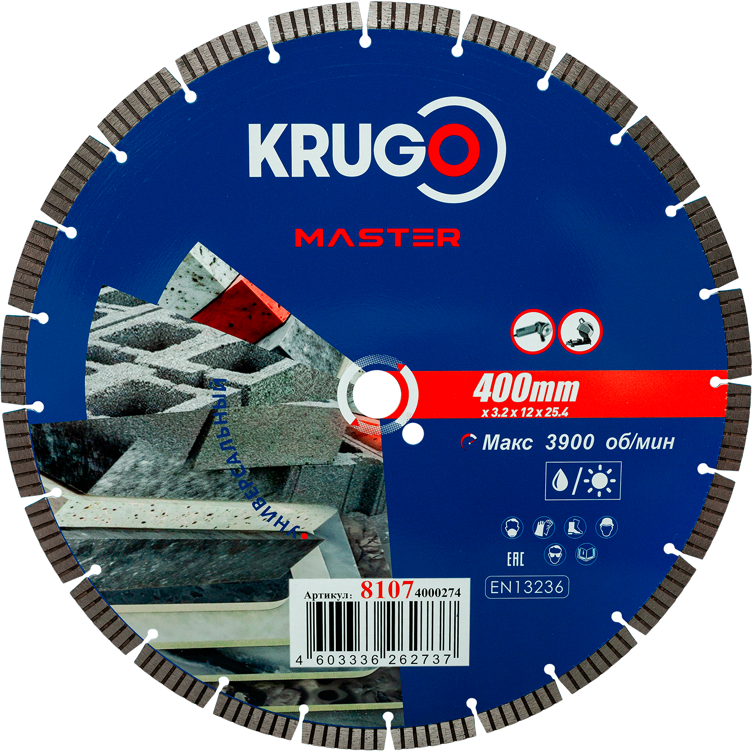 Диск алмазный Турбо сегментный KRUGO MASTER 400х3,2х25,4х10mm, 81074000274