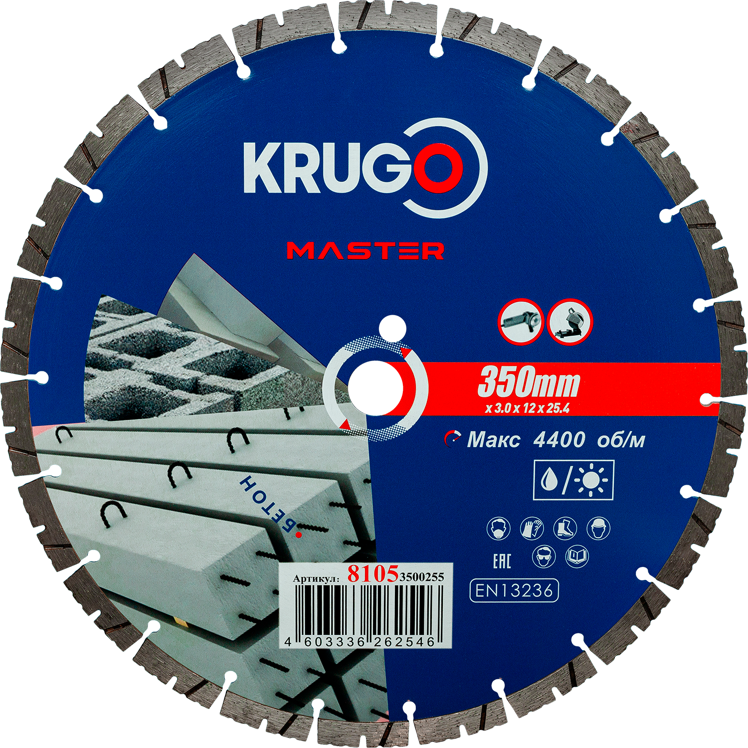 Диск алмазный сегментный турбо KRUGO MASTER по бетону 350х3,0х25,4х12mm, 81053500255