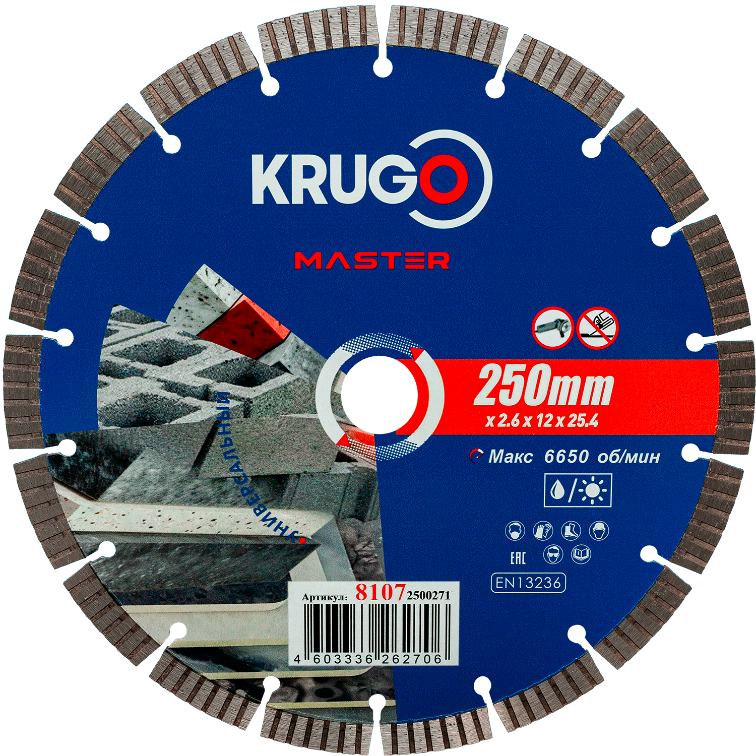 Диск алмазный Турбо сегментный KRUGO MASTER 250х2,6х25,4х10mm, 81072500271