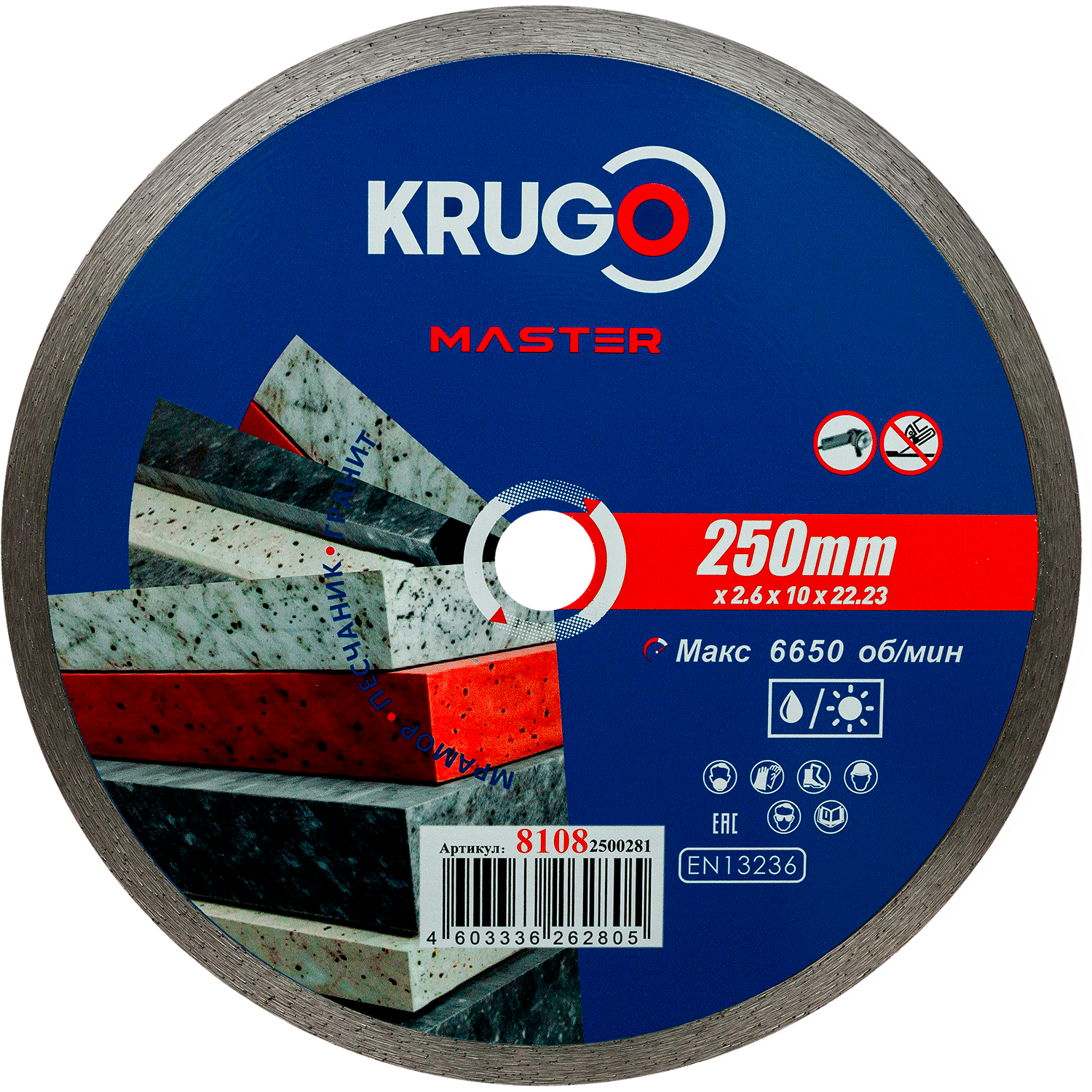 Диск алмазный сплошной KRUGO MASTER по бетону 250х2,6х22,23х10mm, 81082500281