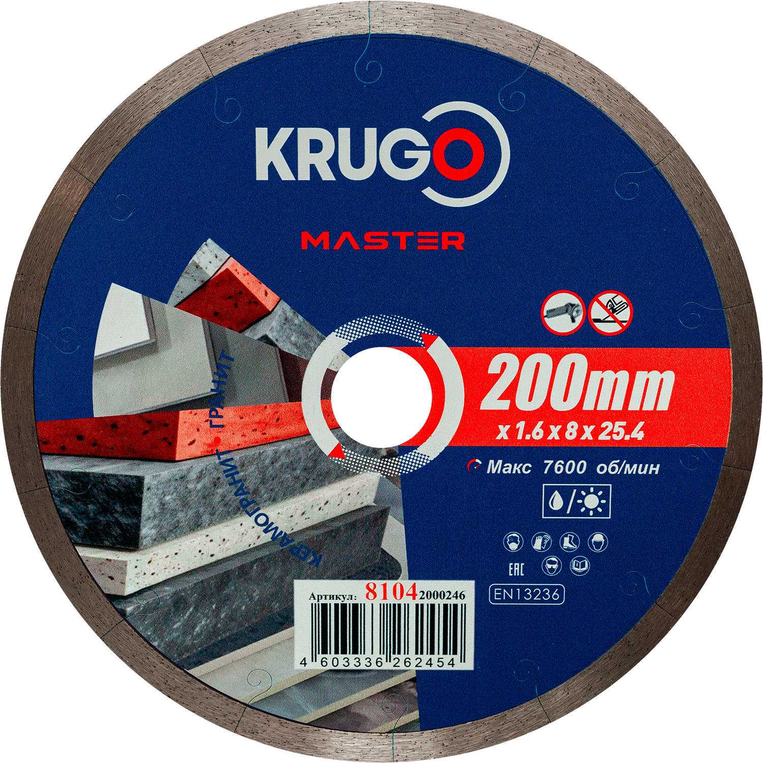 Диск алмазный сплошной ультратонкий по керамике KRUGO MASTER 200х1,6х25,4х8mm, 81042000246