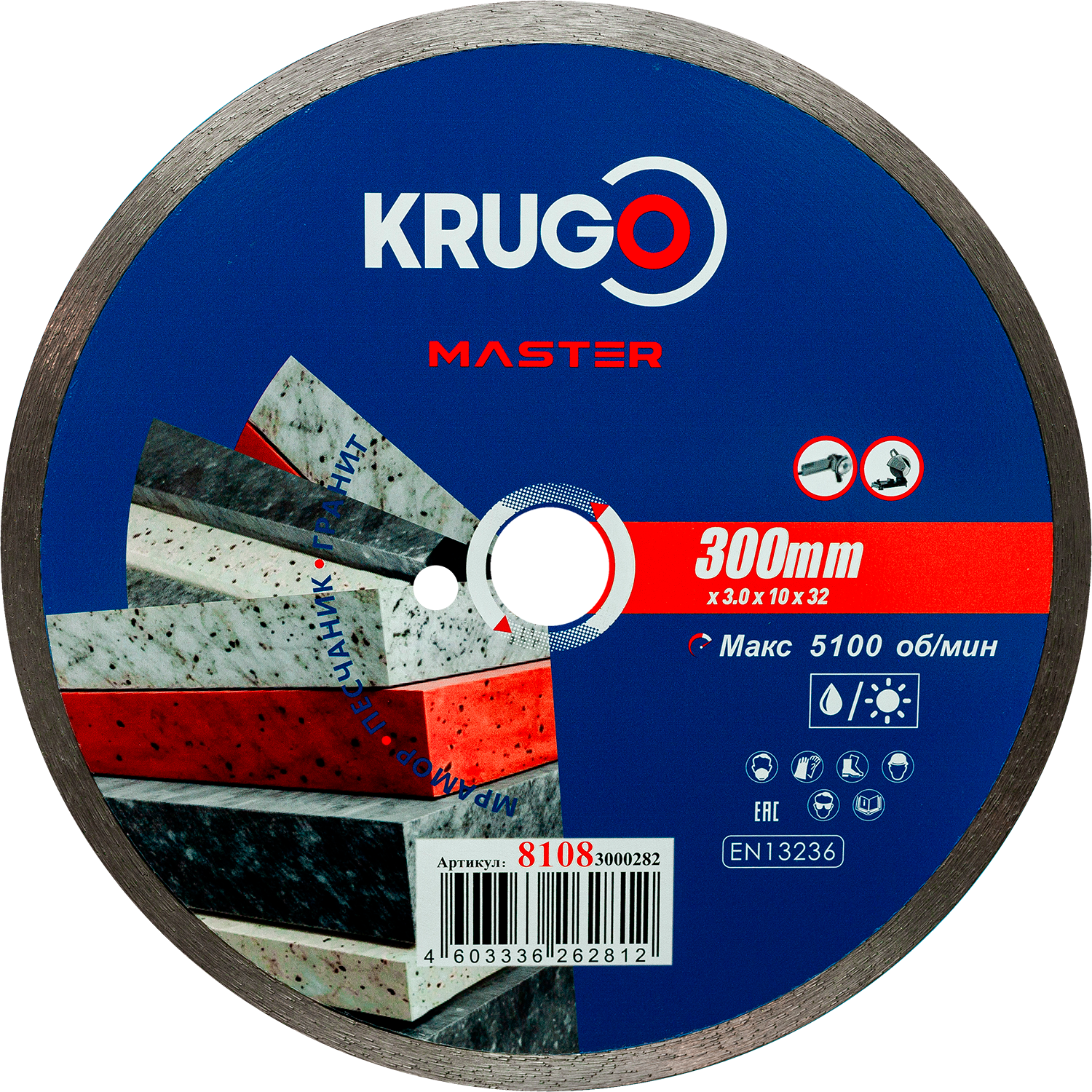 Диск алмазный сплошной KRUGO MASTER по бетону 300х3,0х32х10mm, 81083000282