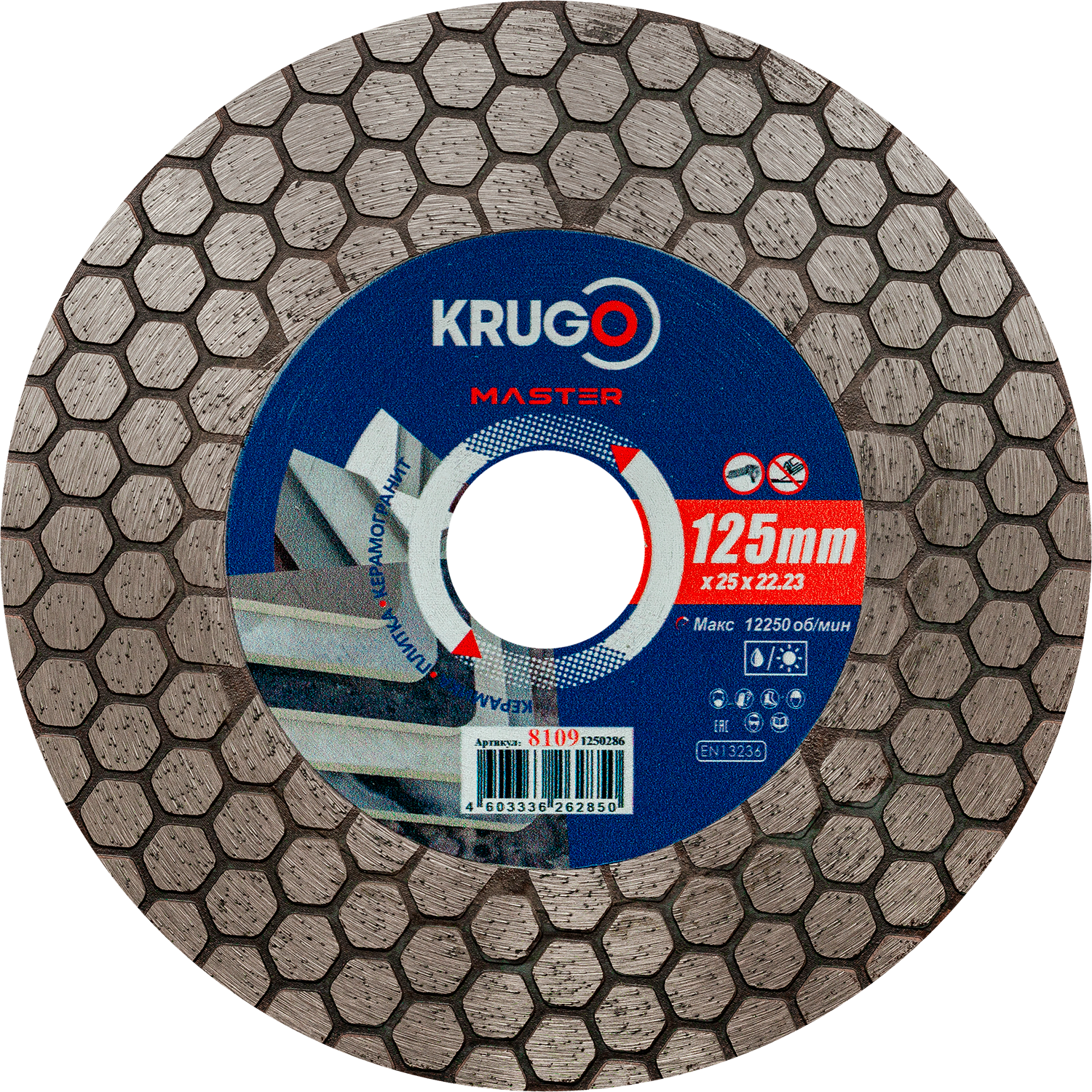 Диск алмазный сплошной ультратонкий по керамике KRUGO MASTER 125х1,1х22,23х8mm, 81011250227